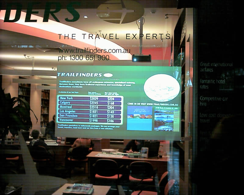 The technology allows a projected image to be displayed directly on the glass and with todays projector technology allowing up to 20,000 hours of lamp life, the on-glass solution is a match for other screen based solutions.